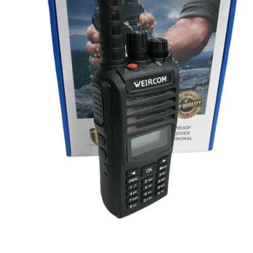 weircom WR-808 merupakan Handy Talky Anti Air dengan harga yang cukup murah dengan rating IP68 merupakan HT yang kedap debu dan dapat direndam di dalam air, serta radio ini juga tahan terhadap benturan dan tetesan. WR-808 sangat mudah untuk digunakan pensinyalan Panggilan Cepat. Dengan menekan sebuah tombol darurat dalam situasi kritis apapun, radio akan membunyikan alarm / sirene yang tajam memberi pengguna peringatan bantuan instan.